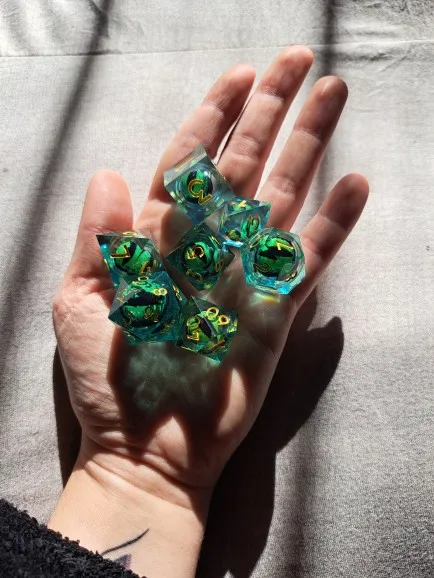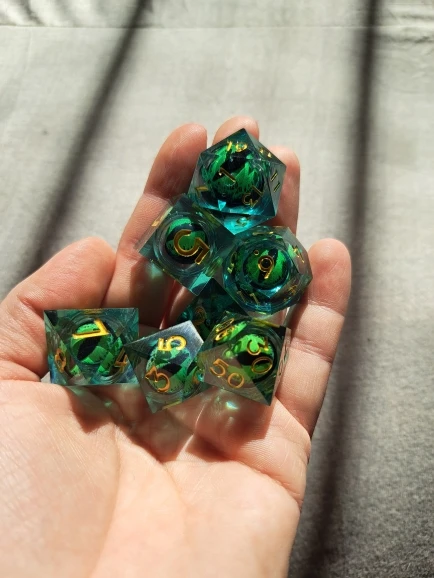 Luther Schiller Very beautiful dice. There are some bubbles in the resin but they’re small, not noticeable unless you’re looking for them. Glitter is also very pretty :)