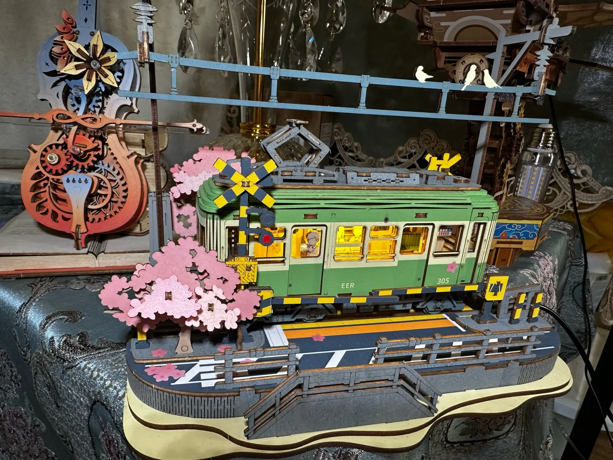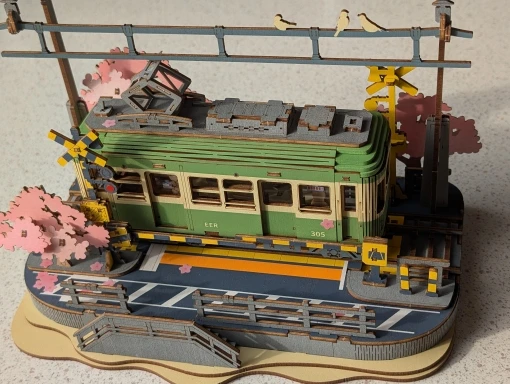 Delve into the artistry of our Sakura Journey - a wooden puzzle model kit, meticulously designed to embody the allure of a traditional tram amidst a backdrop of cherry blossoms. Elevate any space with elegance, courtesy of rich interior details such as a sliding grooved rail and lifelike cherry blossom trees. A thoughtful gift for friends and family, it seamlessly combines the joy of assembly with its captivating design.
